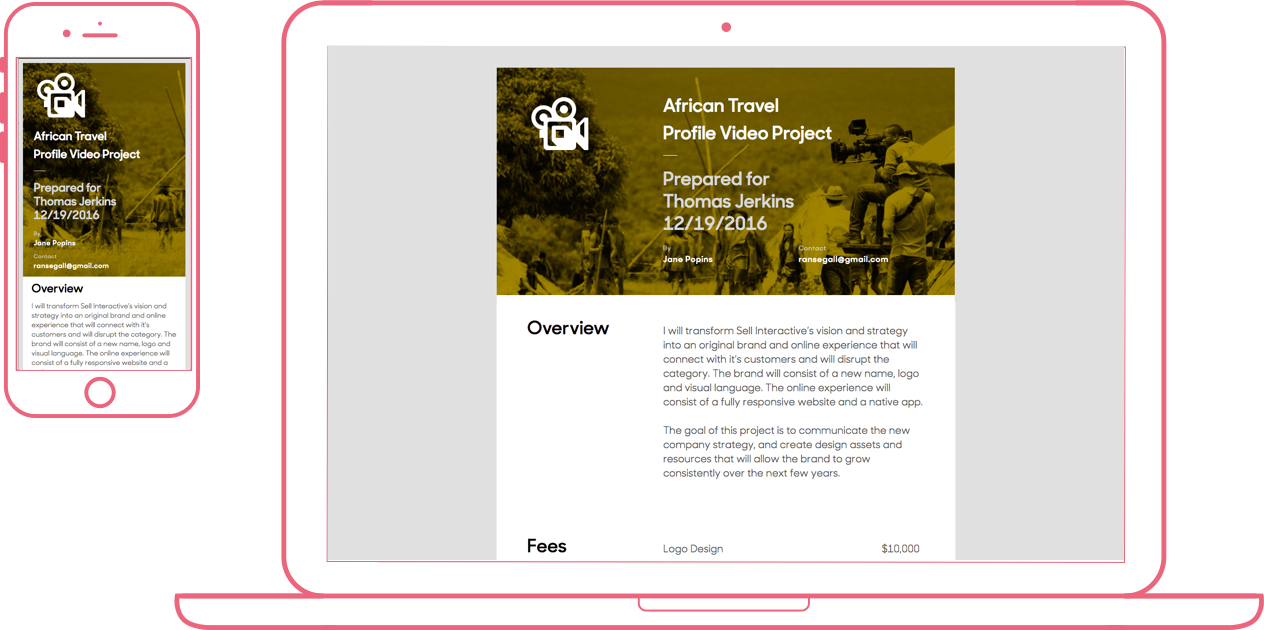 Make a great first impression by sending a proposal that looks amazing on any device. Add your logo, images, videos, tables and your personal touch to any proposal.